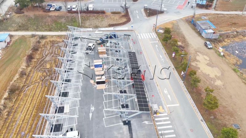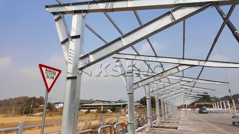 現在、韓国の現場において、カセングが設計・供給する「H型鋼構造ソーラーカーポート」の設置工事が順調に進捗しています。